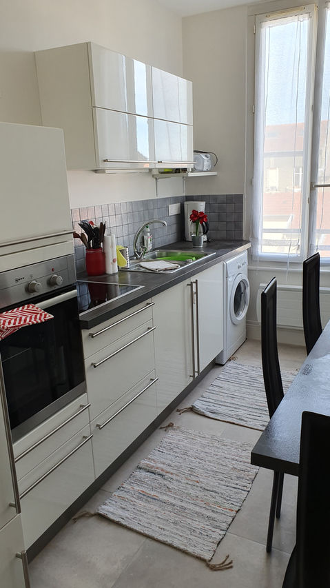 Im 2. Stock wurde die Wohnung im Sommer 2019 komplett renoviert. Sie besteht aus 2 Schlafzimmern, eines mit 2 XL-Einzelbetten (120 cm) und das andere mit 1 160 cm-Bett. Hochwertige Möbel und viele Annehmlichkeiten sind ebenfalls verfügbar.